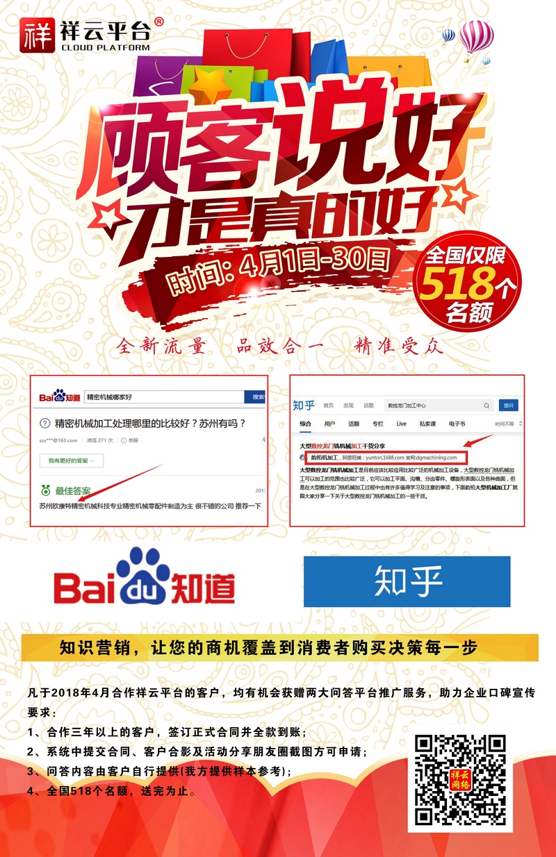 百度知道,知乎。全新流量,品效合一,精準(zhǔn)受眾。現(xiàn)在做祥云營銷型網(wǎng)站,就送百度知道、知乎口碑營銷! 截止日期:2018-4-28日