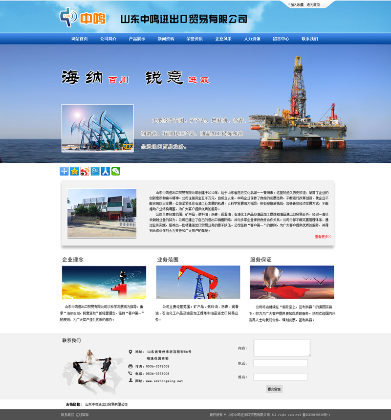 山東中鳴進(jìn)出口貿(mào)易有限公司創(chuàng)建于2013年,位于山東省歷史文化名城——青州市。這里的悠久歷史積淀,孕育了企業(yè)的創(chuàng)新意識(shí)和奮斗精神。公司注冊(cè)資金五千萬(wàn)元,自成立以來(lái),中鳴企業(yè)保持了良好的發(fā)展態(tài)勢(shì),不斷進(jìn)行改革創(chuàng)新,使企業(yè)不斷實(shí)現(xiàn)巨大發(fā)展,公司緊緊抓住石油工業(yè)發(fā)展的機(jī)遇,以科學(xué)發(fā)展觀(guān)為指導(dǎo),積極迎接新挑戰(zhàn),加快轉(zhuǎn)變經(jīng)濟(jì)發(fā)展方式,不斷推動(dòng)產(chǎn)業(yè)結(jié)構(gòu)調(diào)整,為廣大客戶(hù)提供優(yōu)質(zhì)的服務(wù)。